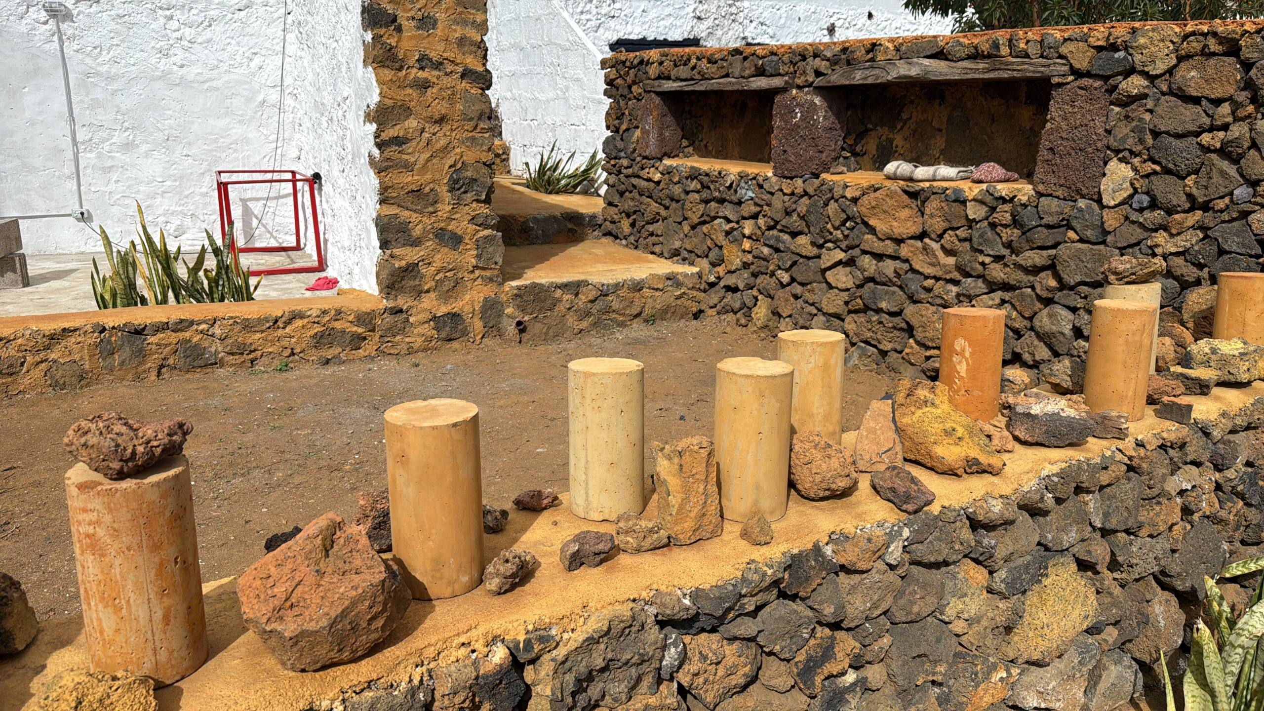 El callejón funciona como un pequeño laboratorio donde Isla de Ferró se hace visible y cercano. Un lugar donde el visitante puede comprender, de manera intuitiva y sensorial, cómo este proyecto articula la isla desde el respeto, la escucha y la belleza. Aquí, la tradición y la experimentación conviven a la misma escala que el territorio, humana, humilde y profundamente conectada a la tierra. Disperso en el callejón tenemos una gran colección de piedras, una lito teca cromática que nos muestra la riqueza cromática y la diversidad geológica de la isla. Interpretar el callejón es también asomarse al Proyecto Isla de Ferró. Cada espacio, cada gesto y cada intervención que lo habita forma parte de una lectura más amplia del territorio y de la identidad herreña.
